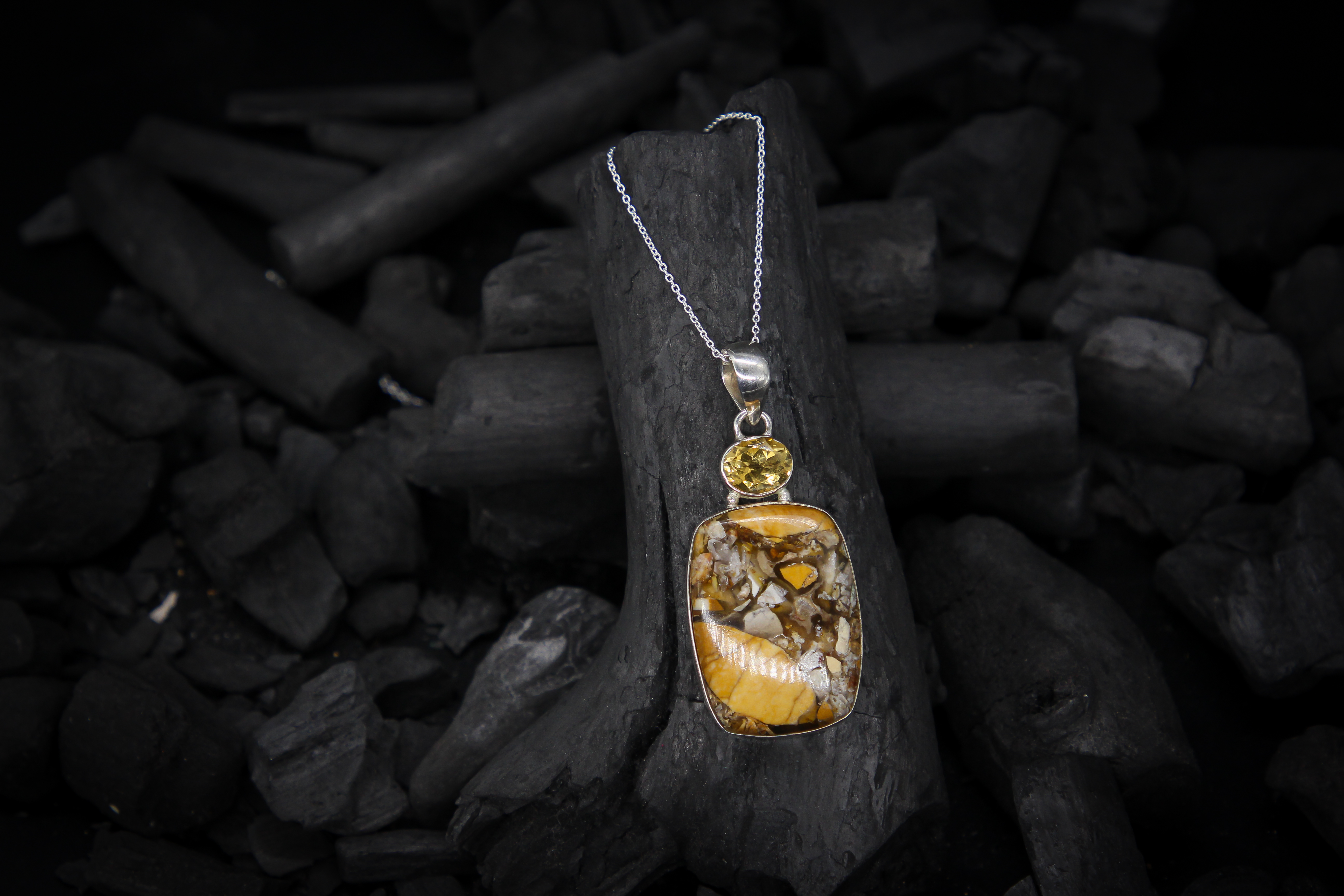 Bold Sterling Silver Pendants (925) Natural Semi-Precious Stone Pendant
